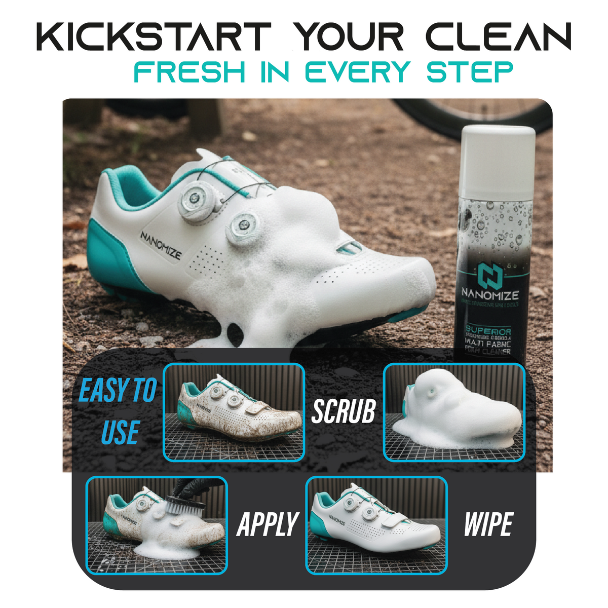 James RBy far the best cleaner I have used yet, works great on my MTB shoes and helmet.